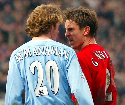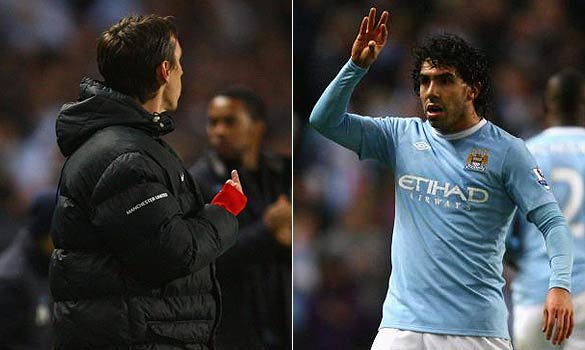 Карлос Тевес стал жертвой одного из таких неосмысленных нападений. Аргентинец ушел из Юнайтед в Манчестер Сити, и незадолго до очной встречи команд в полуфинале Кубка Лиги Невилл слегка прошелся по своему бывшему партнеру в газетной колонке, не отрицая его игровых качеств, но подчеркивая главный мотив перехода – деньги. Оскорбленный Тевес, положив гол в ворота Красных Дьяволов, решил пробежаться мимо скамьи запасных противников, где и сидел Невилл, показав характерный жест с приложенной к уху рукой. Гари не смутился, мгновенно ответив жестом еще более характерным - высоко поднятым средним пальцем. Без всякого желания оправдываясь перед Футбольной Ассоциацией, Невилл лишь только произнес: «Вы хотите, чтобы футбол превратился в игру роботов?»