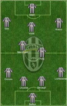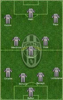 Изначально, как и говорилось летом, Конте намеревался использовать свою излюбленную схему 4-2-4, но отличная игра Артуро Видаля и непоколебимый статус Андреа Пирло и Клаудио Маркизио как игроков основы вынудили Антонио использовать другие вариант. Например: