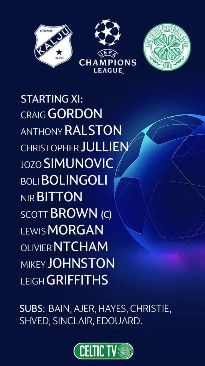 Селтик огласил стартовый состав на ответный поединок квалификационного раунда Лиги чемпионов против Нимме Калью.