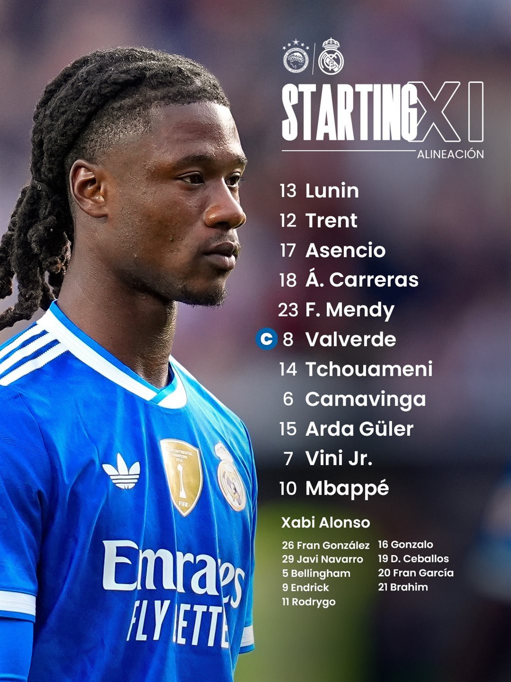 Так, з перших хвилин у футболці "вершкових" вийде український воротар Андрій Лунін — це буде перша офіційна гра для нього за Реал Мадрид з 24 травня.