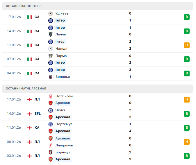 На Джузеппе Меацца зійдуться дві найкращі оборони турніру, тож матч обіцяє бути тактичним, напруженим і максимально концентрованим. Інтеру потрібна перемога, аби уникнути небезпечних сценаріїв наприкінці раунду, тоді як Арсенал може дозволити собі прагматичний підхід. Ціна кожної помилки буде надзвичайно високою.