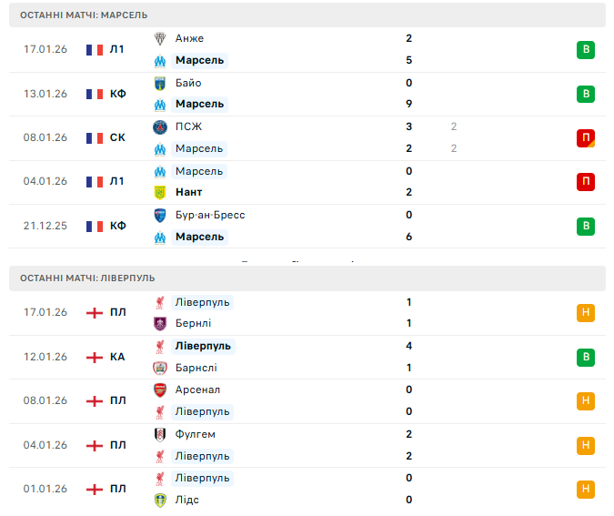 Втім, нічия з Бернлі у чемпіонаті Англії (1:1) знову оголила головну проблему мерсісайдців — реалізацію моментів. Попри це, Ліверпуль залишається непереможним уже у 12 матчах поспіль у всіх турнірах, а його виїзна форма в Лізі чемпіонів викликає повагу. Додатковою інтригою стане можливе повернення Мохамеда Салаха після Кубка африканських націй.