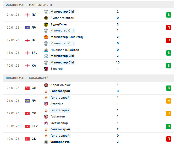 Восьмий тур основного раунду Ліги чемпіонів УЄФА зводить на Етіхаді Манчестер Сіті та Галатасарай — матч, який має стратегічне значення для обох команд. Англійський гранд прагне уникнути додаткового раунду плей-оф після несподіваних осічок, тоді як чемпіон Туреччини приїздить до Манчестера з чітким розумінням: позитивний результат може зміцнити їхні єврокубкові позиції.