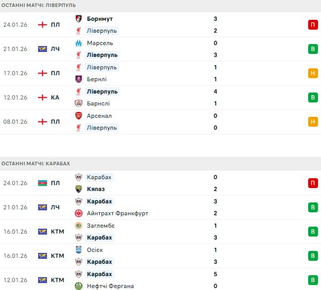 Поки Ліверпуль прагне топ-8, Карабах, який вважається явним аутсайдером, також має надії на вихід у плей-оф, добившись низки помітних результатів проти іменитих суперників. Дванадцятиразові чемпіони Азербайджану ніколи раніше не проходили далі групового етапу ЛЧ.