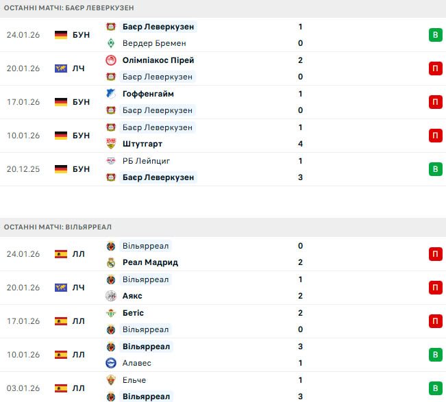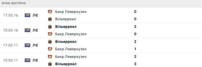 Однак історично склалося так, що Вільярреал має перевагу в цьому протистоянні, залишаючись непереможеним у чотирьох попередніх зустрічах із Баєром — три перемоги, одна нічия. Проте Баєр програв лише один із останніх восьми домашніх матчів УЄФА проти іспанських команд і підходить до матчу із серією з трьох перемог поспіль.