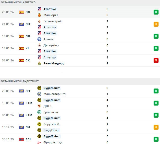 Буде/Глімт буде натхненний тим фактом, що Атлетіко не зміг зберегти свої ворота в недоторканності в останніх десяти матчах ЛЧ, а норвежці забивали як мінімум два голи у п'яти із семи єврокубкових матчів цього сезону.