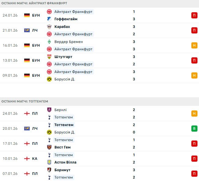 Після того, як минулого сезону Айнтрахт сяяв всіма фарбами в Бундеслізі, в сезоні-2025/26 він пережив серйозний спад. Безвиграшна серія німців у всіх турнірах продовжилася до тривожних шести матчів (три нічиї та три поразки) у суботу, коли сталася домашня поразка від Гоффенгайма (1:3).