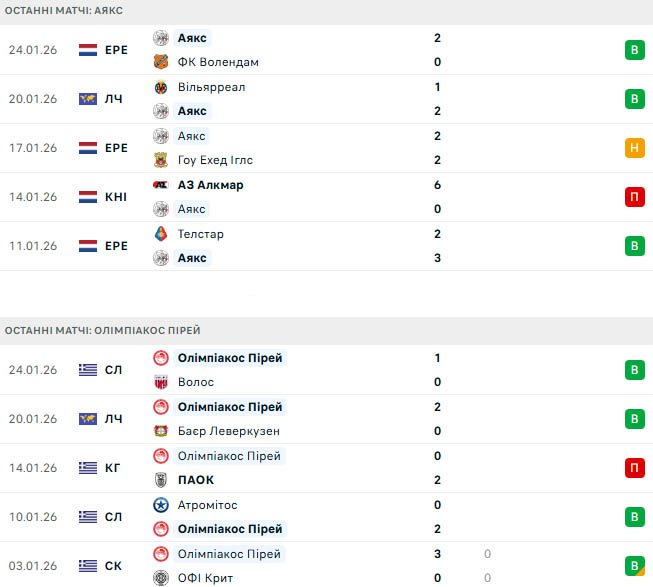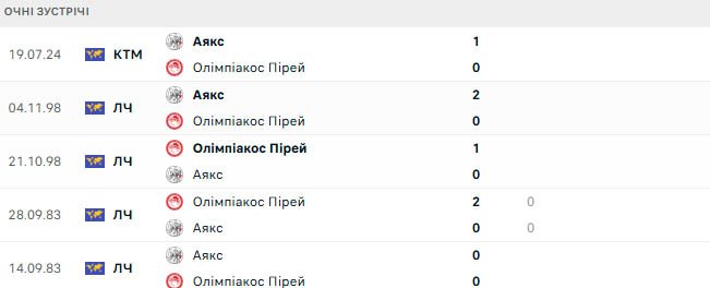Історія може вселяти оптимізм, враховуючи, що Аякс програв лише один із останніх 15 матчів проти греків, причому ця єдина поразка була від Панатінаїкоса у відборі ЛЕ-2024/25.