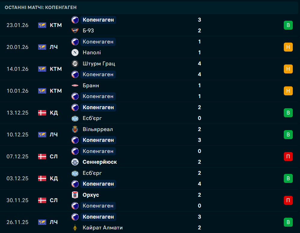 У той самий час для данського Копенгагена ситуація ще більш очевидна — усі свої залікові бали "леви" здобули в трьох попередніх турах, обігравши Кайрат (3:2) та Вільярреал (3:2), а також зігравши внічию проти Наполі (1:1). Проблема полягає в тому, що всі ці колективи належать до умовного "рівня" колективу Якоба Нееструпа в цьому розіграші, і нікого суттєво вище за себе данці так і не змогли здолати.