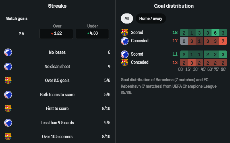 За версією betking, на перемогу Барселони можна поставити з коефіцієнтом 1.15, тоді як потенційний успіх данського Копенгагена оцінюється показником 17.50. Імовірність нічийного результату представлена коефіцієнтом 9.80.