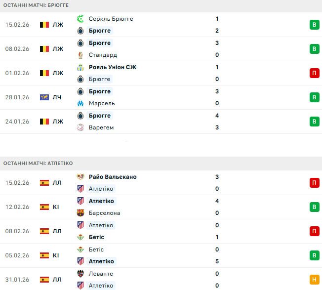 В середу, 18 лютого, Брюгге та Атлетіко Мадрид на стадіоні Ян Брейдел у Бельгії відкриють двоматчеве протистояння за вихід до 1/8 фіналу Ліги чемпіонів.