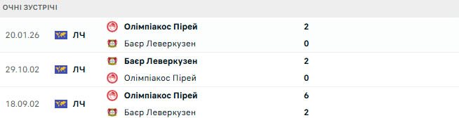 ОЛІМПІАКОС — БАЄР ЛЕВЕРКУЗЕН