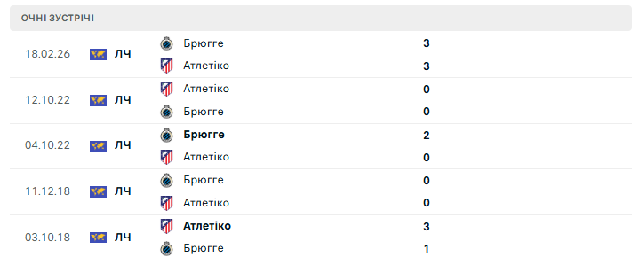 Втім, у Мадриді Атлетіко традиційно інший. Три перемоги у чотирьох домашніх матчах ЛЧ цього сезону — серйозний аргумент на користь господарів. Попри те, що в останніх п’яти поєдинках у всіх турнірах у них лише дві перемоги, недавні 4:2 проти Еспаньйола показали — атакувальний потенціал у Серлота та Альвареса достатній, щоб вирішувати долю протистояння. Щоправда, статистика очних зустрічей насторожує: Атлетіко не перемагає Брюгге в Лізі чемпіонів уже чотири матчі поспіль.
