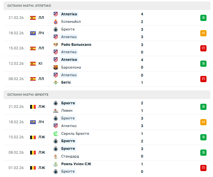 Перший матч у Бельгії подарував справжню єврокубкову феєрію — 3:3, камбек за камбеком і максимум інтриги перед вирішальною зустріччю. Тепер усе починається з нуля, але вже в Мадриді, де Атлетіко спробує використати фактор власного поля проти Брюгге, щоб вирвати путівку до 1/8 фіналу.