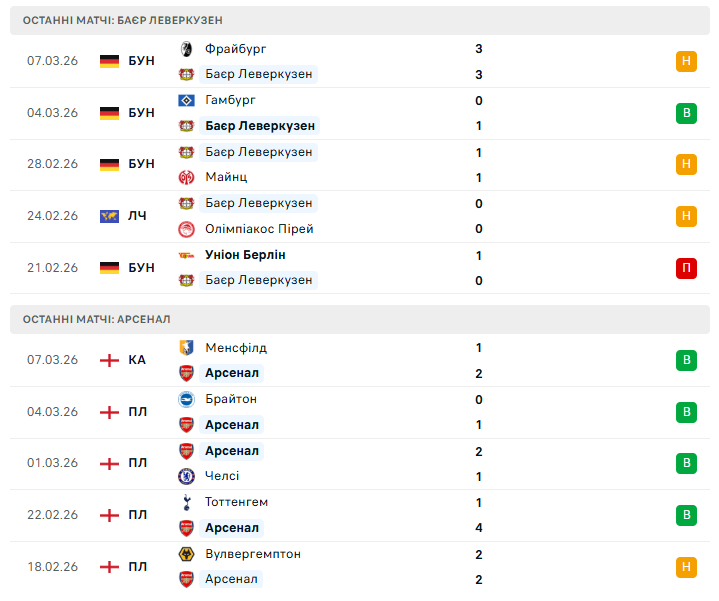 Попри статус фаворита гостей, Леверкузен навряд чи буде зручним суперником. Домашня оборона "фармацевтів" останнім часом виглядає дуже надійно, а такі виконавці, як Алеїш Гарсія чи Алехандро Грімальдо, здатні створити проблеми будь-якому опоненту. Водночас якість складу та стабільність Арсеналу змушують очікувати, що англійський клуб спробує здобути позитивний результат ще до матчу-відповіді в Лондоні.