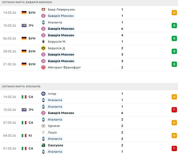 Після переконливої перемоги над Боруссією Д (4:1) у минулому місяці, Аталанта не виграла жодного матчу, вирушаючи до Мюнхена без перемог у п'яти останніх іграх. Як бачимо, ситуація не з найкращих.