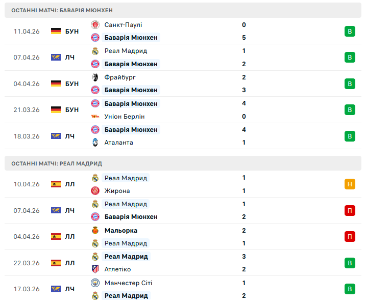 У центрі футбольної Європи — черговий акт великого протистояння між Баварією та Реалом Мадрид. Другий матч чвертьфіналу Ліги чемпіонів обіцяє стати справжнім випробуванням нервів, адже після перемоги мюнхенців на Бернабеу інтрига жива як ніколи. Усе вирішиться на Альянц Арені — стадіоні, де господарі цього сезону майже не знають поразок.