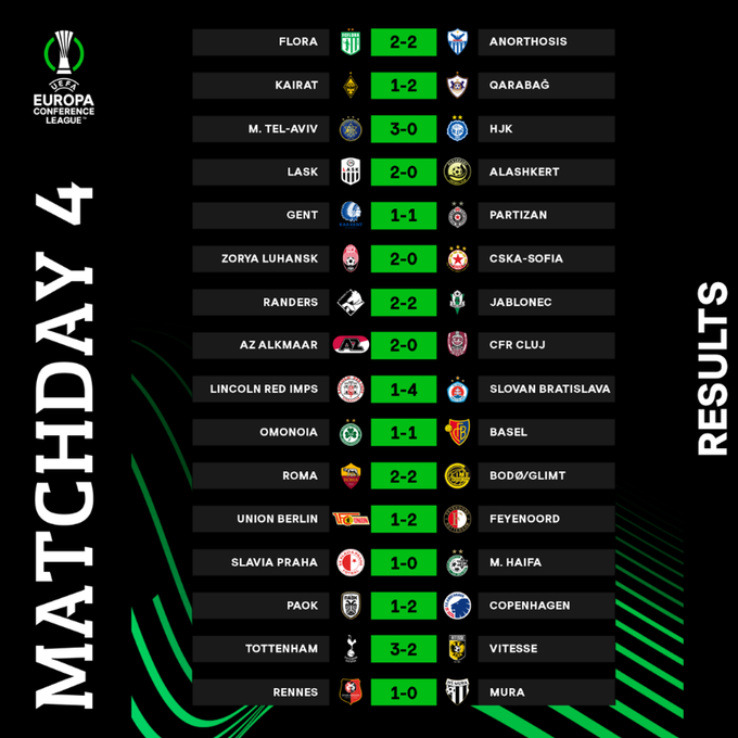 В Лиге конференций завершились матчи четвертого тура группового этапа, которые во многом прояснили ситуацию в группах.
