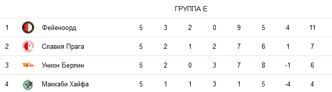 В рамках 5-го тура группового этапа Лиги конференций Фейеноорд на последних минутах сумел вырвать ничью у пражской Славии, а Унион Берлин одержал минимальную победу на выезде над Маккаби Хайфа.