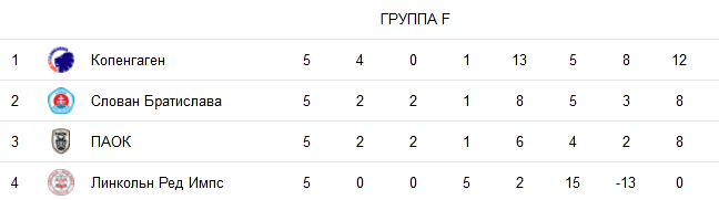 В рамках 5-го тура группового этапа Лиги конференций в матчах группы F Копенгаген разгромил на выезде гибралтарский Линкольн Ред Импс со счетом 4:0, а братиславский Слован сыграл в нулевую ничью с ПАОКом.