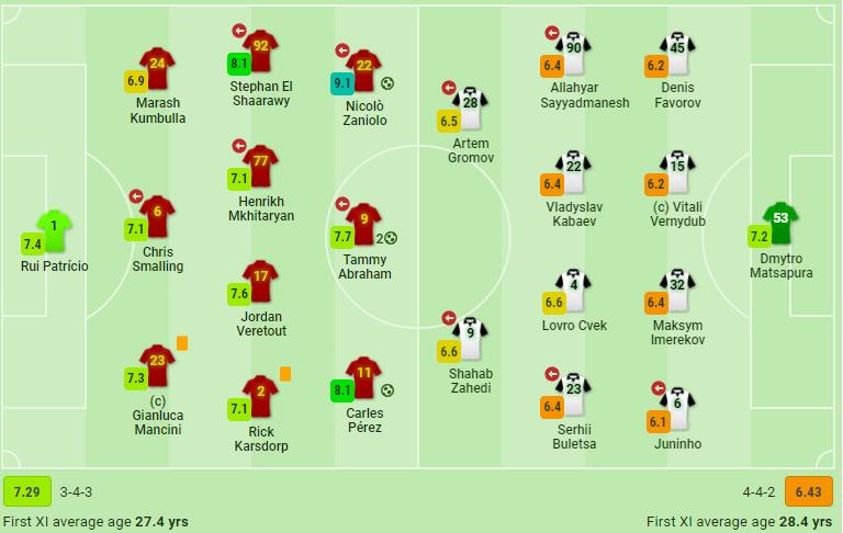 В составе команды Виктора Скрипника лучшим признан вратарь Дмитрий Мацапура, получивший оценку — 7,2. Худшим игроком назван защитник Жуниньо — 6,1 балла.