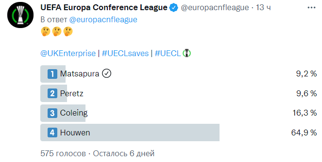 Именно момент Дмитрия Мацапуры с отраженным пенальти пресс-служба УЕФА включила в список лучших сейвов минувшего тура Лиги конференций, в который также попали успешные действия Даниэля Переца из Маккаби Тель-Авив, Дэйла Колинга из Линкольна и Йеруна Хаувена из Виттеса.