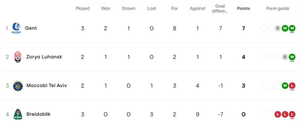 У рамках третього туру групового етапу Ліги конференцій бельгійський Гент приймав на своєму полі ісландський Брєйдаблік, які є суперника луганської Зорі за квартетом B.