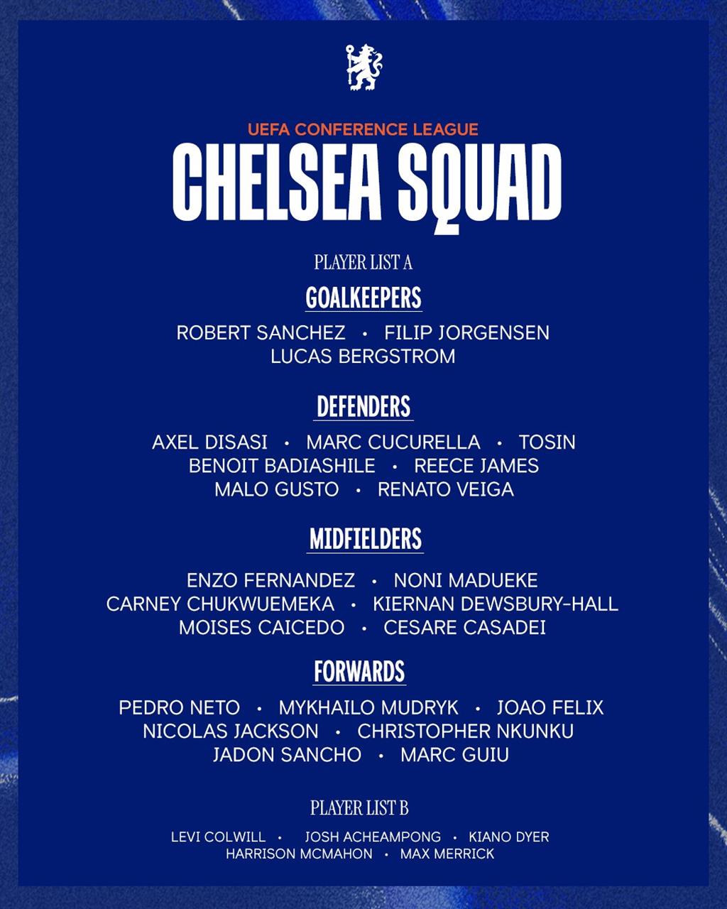 Челсі на своєму офіційному сайті опублікував заявку на майбутній основний раунд Ліги конференцій.