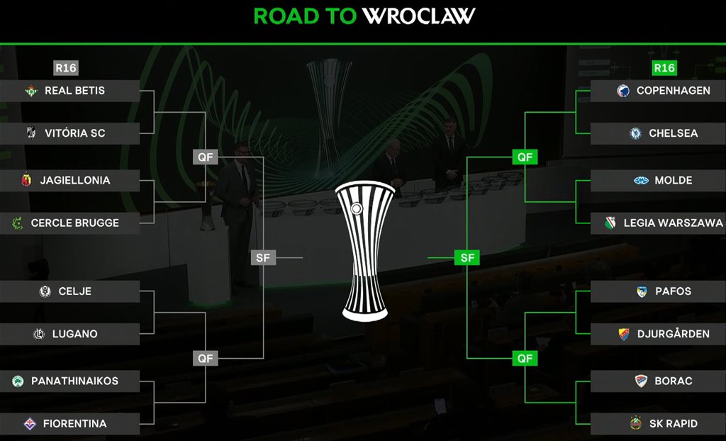 Сьогодні, 21 лютого, у швейцарському Ньоні пройшло жеребкування 1/8, 1/4 та 1/2 фіналу Ліги конференцій.