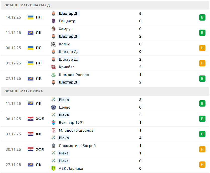 У рамках останнього, шостого туру основного етапу Ліги конференцій УЄФА-2025/26 український Шахтар прийматиме хорватську Рієку.