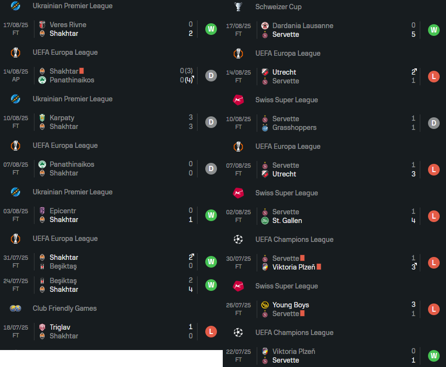 Матч-відповідь поміж швейцарським Серветтом та донецьким Шахтарем відбудеться за тиждень, 28 серпня.