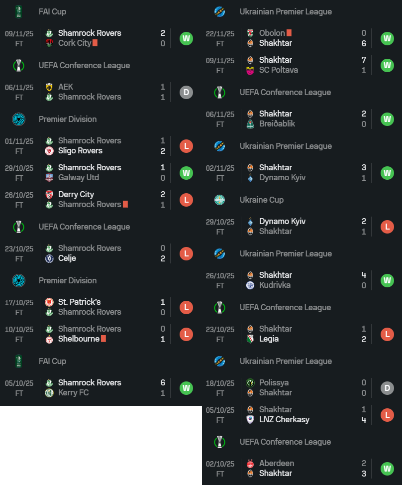 Перевага над Деррі Сіті за очками для команди Бредлі була настільки значною, що, можливо, вона й вирішила на мінорній ноті догравати внутрішню кампанію та зробити акцент, хіба що, на просуванні в Кубку Ірландії. Але й тут є важливий нюанс. Шемрок виграв у Корк Сіті фінальну гру на Авіва Стедіум (2:0), але вона відбувалась ще 9 листопада, тобто до початку міжнародної перерви, а отже після цього суперники Шахтаря не повертались до ігрового тонусу. Хоча й статус володарів внутрішнього "золотого дубля" в 2025 році від них нікуди за цей час не подівся.