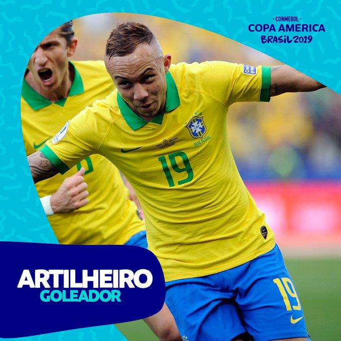 Золотую бутсу Копа Америка-2019 получил вингер бразильцев Эвертон, на счету которого три гола. Столько же у перуанца Пауло Герреро.