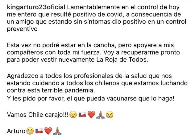 Ваш Артуро", — гласит прикрепленный к сообщению текст в официальном аккаунте Instagram чилийского футболиста.