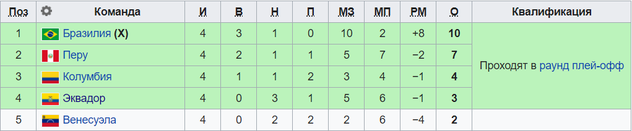Лучшими в своих группах, прогнозируемо, стали Аргентина и Бразилия, однако ни одной из этих сборных так и не удалось набрать максимального количества возможных очков.
