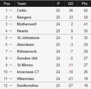Бомбардиры: Йелавич (Рейнджерс) – 14, Хупер (Селтик) – 13, Дэли (Данди Юнайтед), Сандаса (Сент-Джонстон) – по 11