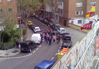 у гостей Мадрида. Представители разных лагерей были настроены дружелюбно, но друг с другом не общались. Некоторые парни в цветах памлонцев разительно выделялись в общей массе - совершенно нетипичные как для испанцев лица, белая-белая кожа. Баски!