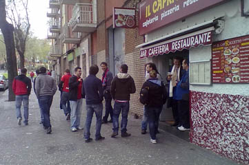 А вот в случае с немногочисленными мадридскими посетителями кафе удача мне улыбнулась. Компания из растатуированного парня лет 25 в футболке Райо Вальекано, ничем не примечательной девушки и еще одного паренька, очень похожего на Анхеля Ди Марию, с радостью поболтала со мной несколько минут на языке Шекспира. "Сколько себя помню, всегда болел за Райо. Дело в том, что я вот тут недалеко жил раньше (показывает куда-то в сторону). Сейчас там мой дед живет, когда хожу на матчи, всегда его навещаю. За Реал никогда не болел. Даже когда против Барселоны играют. Не люблю ни тех, ни других.