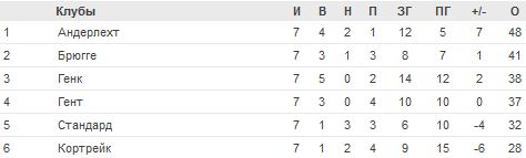 В конце матча гостям еще и откровенно повезло, что Акпала не довел счет до крупного, когда выскочил один на один, так что счет на табло вполне справедливо отображал происходившее на поле. И все-таки, без победы в следующем туре на поле Андерлехта Брюгге будет очень тяжело не то, что продолжить борьбу за чемпионство, даже место черно-синих в Лиге чемпионов окажется под сомнением, поскольку обыгравший в веселой перестрелке Кортрейк Генк уже наступает на пятки команде Даума.