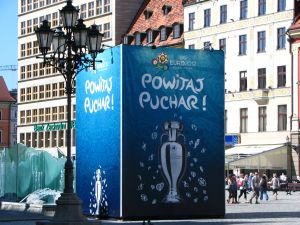 Ажиотаж. В преддверии Евро он огромен. По радио постоянно рекламируется что-то, что имеет хотя бы косвенное отношение к приближающемуся чемпионату. Разыгрываются билеты на матчи в различных викторинах, путем народного голосования определяется официальная песня польской сборной на турнире. Довелось услышать разговор обычных польских ребят – они на полном серьезе обсуждали, какая из композиций более достойна сборной. А раз обсуждают, значит это актуально и интересно. Даже магазины абсолютно, на первый взгляд, нефутбольных товаров увязывают тематику Евро со своей продукцией – уж очень я удивился, увидев призыв обзавестись новой оправой для диоптрических очков на витрине оптики во Вроцлаве. Словом, поляки с нетерпением ждут футбольного праздника, который начнется уже очень скоро.