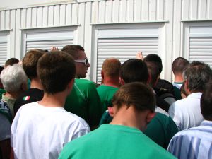 Друзья, это было что-то невероятное! Настоящим приключением обернулась попытка заполучить билеты на матч Шленск - Заглембе. Впечатлений от нее осталось минимум на ближайшие лет пять. Представьте себе три небольших строительных вагончика с тремя окошками в каждом. Один вагончик отпадает сразу - там пресса может получить заранее заказанные аккредитации, ровно как и купившие билеты через интернет по Карте болельщика получить свои картонки на руки. Остается два вагончика по три окошка в каждом. И тысячи (!!!) человек! Поляки, судя по всему, и сами не ожидали, что такое вообще возможно. Очереди совершенно никто не придерживался. Толпа, видевшая цель – крошечные окошки – словно под воздействием заклинания некоего злобного волшебника отчаянно пробивалась к ней не обращая внимания ни на кого.