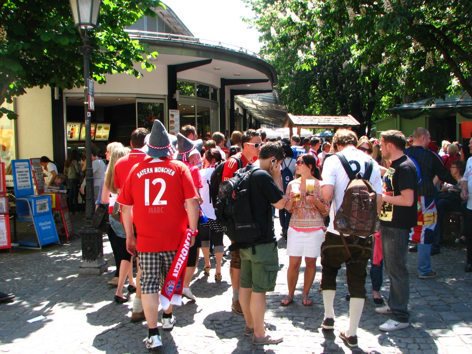 аком мне повстречалась уже компания болельщиков Баварии. Целая, как я понял, семья, а может даже и две. На детях - баварские футболки с фамилией "Гомес". Немцы оказались приятными и словоохотливыми людьми. "