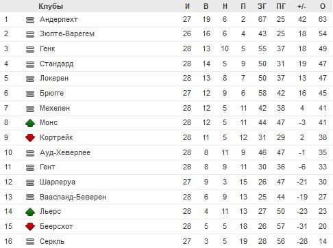 Тем временем, если у борьбы за чемпионство в регулярке еще есть шанс на жизнь, то в подвале таблицы, похоже, все уже ясно. Проиграв на выезде Генту, Серкль Брюгге, похоже, лишился шансов покинуть последнюю строчку турнирной гонки, а значит, начнет плей-офф в худшем положении, чем конкурент. Вот только кто будет этим конкурентом - пока что вопрос не решенный. На данный момент к борьбе за выживание ближе всех занимающий 15-ю строчку Беерсхот, но у Медведей календарь гораздо проще, чем у их ближайшего конкурента, Льерса. Посему, за два оставшихся тура все может измениться и в нижней части таблицы.