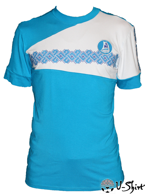 Футбольна вишиванка U-Shirt Дніпро виконана у традиційних клубних кольорах. Дуже оригінальне рішення дизайну самої футболки, доповнює спеціально розроблений орнамент вишивки, який символізує однойменну річку, по якій на повному ходу, долаючи всі труднощі і знегоди, пливе корабель під назвою "Дніпро".