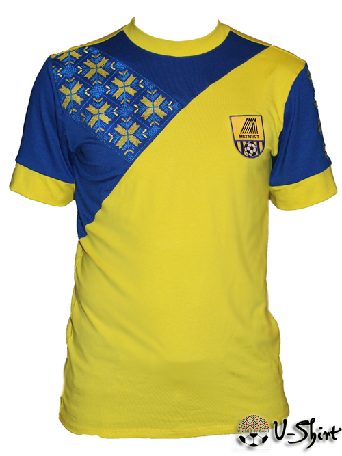 Футбольна вишиванка U-Shirt Металіст виконана в традиційних жовто-синіх кольорах. Клубна вишиванка виглядає дуже сучасно і оригінально. Особливу виразність дизайну надає стилізована вишивка, в її орнаменті закладена не тільки футбольна складова, але і улюблене місто, яке вона представляє.