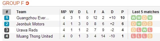 Гуанчжоу и в повторном матче разгромил бедный Муанг Тонг Юнайтед, отгрузив им те же четыре мяча, что и дома. Очередные голы на свой счет записал Мурики – бразилец в этот раз ограничился дублем. Китайский чемпион находится в шаге от выхода из группы.