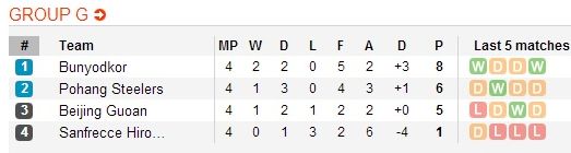 Свое первое очко в турнире заработал японский чемпион – Санфречче удержал ничью на поле Пхохан Стилерс, которому теперь предстоит решить в споре с Бейджином судьбу второй путевки в плей-офф. Бунедкор свое упустить не должен.