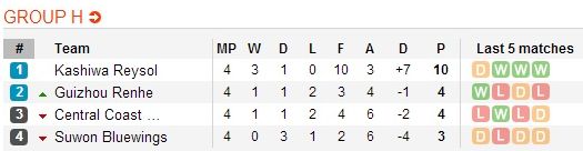 Вернулся в борьбу за выход из группы Гуйчжоу Рене, совершивший впечатляющий камбэк дома против австралийцев из Сентрал Коуста. Уступая 0:1, китайцы провели два гола на 83-й и 85-й минутах и сразу же выскочили на второе место в группе.