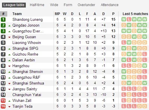 Китайская Суперлига, 6-й тур: