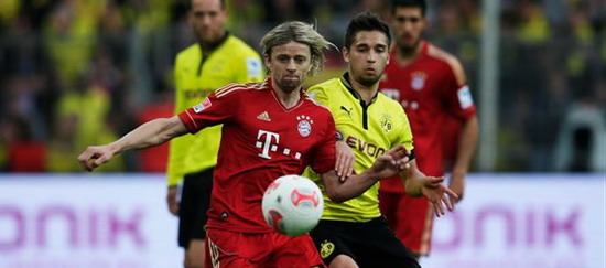 Однако и Боруссии не хватало ее привычного прессинга, особенно вольготно мюнхенцы чувствовали себя на флангах. Рафинья регулярно подключался к атакам, прекрасно взаимодействовал с Шакири, отвлекал защитников от швейцарца и время от времени неплохо подавал в центр. Именно Шакири с Рафиньей организовали ответный мяч, забитый Гомесом. Этот мяч стал 13-м, который Дортмунд пропустил после фланговой подачи, что больше, чем за два предыдущих сезона вместе взятых. Так что в финале ЛЧ фланговые атаки могут стать смертельным оружием в ногах игроков Баварии. После второго гола наступил сравнительный штиль, который на мгновенье потревожил пенальти, нереализованный Левандовски.